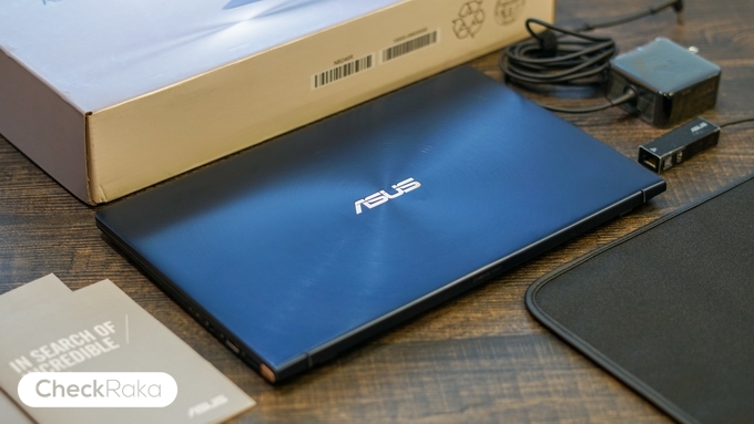ASUS ZenBook 14 (UX433FN) สำหรับเครื่องทดสอบจะมาพร้อมตัวเครื่อง, อะแดปเตอร์ชาร์จ, อะแดปเตอร์แลนด์, คู่มือ และซองใส่โน้ตบุ๊ค เครื่องวางจำหน่ายจริงอาจจะแตกต่างไปจากนี้ ตัวเครื่อง ASUS ZenBook 14 (UX433FN) มาพร้อมดีไซน์วัสดุโลหะสวยงามมากๆ มีให้เลือก 2 สี ได้แก่ สีน้ำเงิน Royal Blue และสีเงิน Icicle Silver ออกแบบเป็นลายโลหะขัดลายทรงกลมซึ่งเป็นเอกลักษณ์ของเอซุส ส่วนโลโก้จะเป็นโครเมี่ยมแวววาว ดูโดดเด่นและสวยงามมากๆ