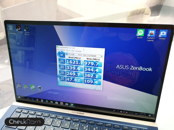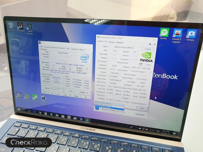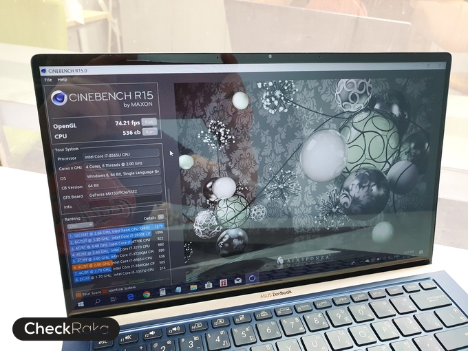 ประสิทธิภาพ ASUS ZenBook 14 จะมีด้วยกันหลายรุ่นย่อย สำหรับรุ่นนี้ ASUS ZenBook 14 (UX433FN) มาพร้อม CPU Intel Whiskey Lake Core i7-8565U, GPU Intel UHD 620 + Nvidia MX150 2GB DDR5 Max-Q, RAM 8 GB LPDDR3, SSD 512GB M.2 PCIe/NVMe มาพร้อม Microsoft Windows 10 Home 64 Bit สามารถทำงานร่วมกับ Windows Hello และ Cortana สั่งการด้วยเสียงได้ (ไกลสุด 4 เมตร) และรองรับการเชื่อมต่อระดับสูง Wi-Fi 802.11 a/b/g/n/ac, Bluetooth 5.0 ผลการทดสอบในส่วนของประสิทธิภาพ จะมีรายละเอียดตามภาพดังนี้ครับ