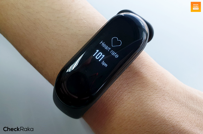 ส่วนการตรวจวัดการเต้นหัวใจแบบแมนนวล ทำได้เพียงแตะปุ่มทัชใต้หน้าจอค้างไว้แล้วปล่อย ตัว Mi Band 3 ก็จะตรวจวัดให้ทันที โดยใช้เวลาในการตรวจวัดอัตราการเต้นหัวใจอยู่ที่ประมาณ 1 - 2 นาที เท่านั้น