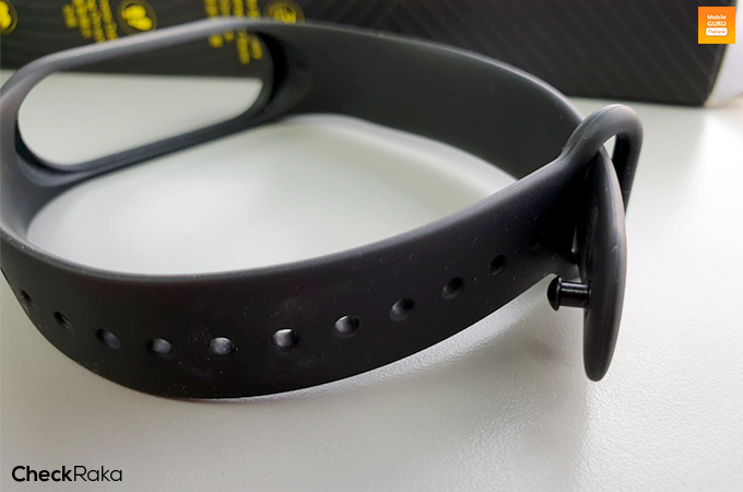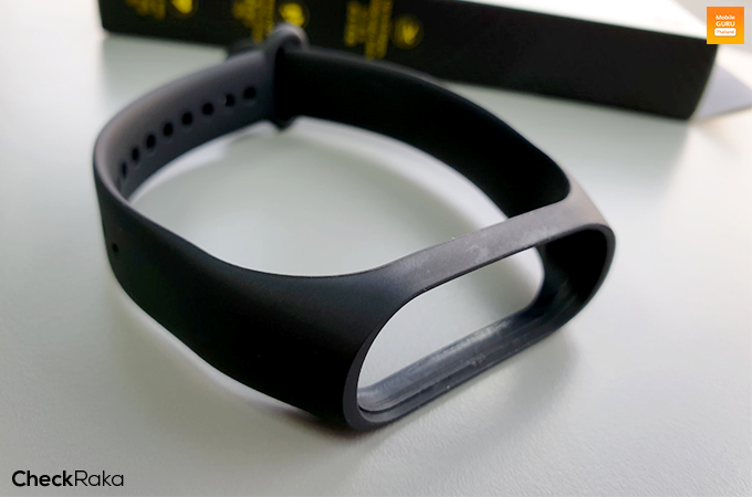 สำหรับตัวสายรัด จะใช้วัสดุเป็นยางพลาสติก (Thermoplastic elastomer) มีความยาวประมาณ 247 มิลลิเมตร สามารถเลือกปรับขนาดได้ตั้งแต่ 155 - 216 มิลลิเมตร และสามารถถอดเปลี่ยนจากตัว Mi Band 3 ได้เลยแค่ดันออกเท่านั้น