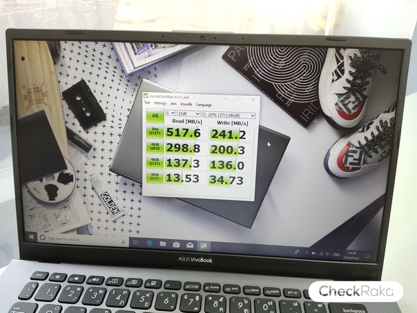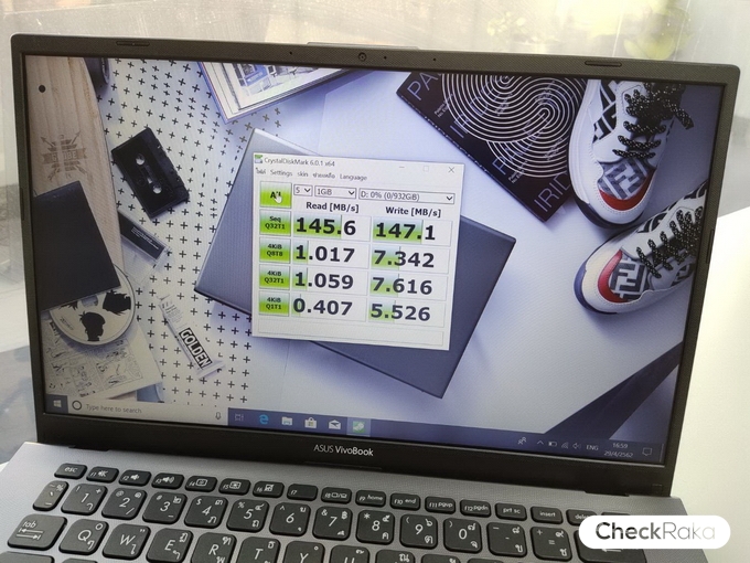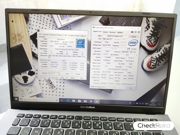 ASUS VivoBook 14 (X412) มาพร้อม CPU Intel Pentium Gold 4417U 2.30GHz, GPU Intel UHD 610, RAM 4GB DDR4 2133MHz SDRAM, up to 12 GB SDRAM, หน่วยเก็บข้อมูลแบบ Dual Storage 128GB SATA 3.0 SSD + 1TB 5400 rpm SATA HDD (ตรงนี้โดดเด่นมากๆ ครบทั้งความเร็ว และความจุ) มาพร้อม Microsoft Windows 10 Home 64 Bit, รองรับการเชื่อมต่อ Wi-Fi 5 802.11 ac (2x2) และ Bluetooth 4.2 ผลการทดสอบในส่วนของประสิทธิภาพ จะมีรายละเอียดดังนี้ครับ