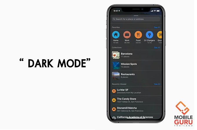 เป็นเทรนด์กำลังนิยมเลยสำหรับ "Dark mode" กับการเปลี่ยนธีมสีพื้นหลังให้เป็นสีดำ ซึ่งใน iOS 13 ทาง Apple ได้ใส่ฟีเจอร์นี้เข้ามาให้ เพื่อสามารถใช้งานหน้าจอได้สบายตามากขึ้น ลดการรบกวนคนรอบข้างจากแสงในเวลากลางคืนได้ และลดการใช้พลังงานของแบตเตอรี่จากหน้าจอชนิด AMOLED ได้ด้วย ซึ่ง iPhone XS และ iPhone XS MAX ใช้หน้าจอแสดงผลชนิดนี้อยู่ (OLED Display)