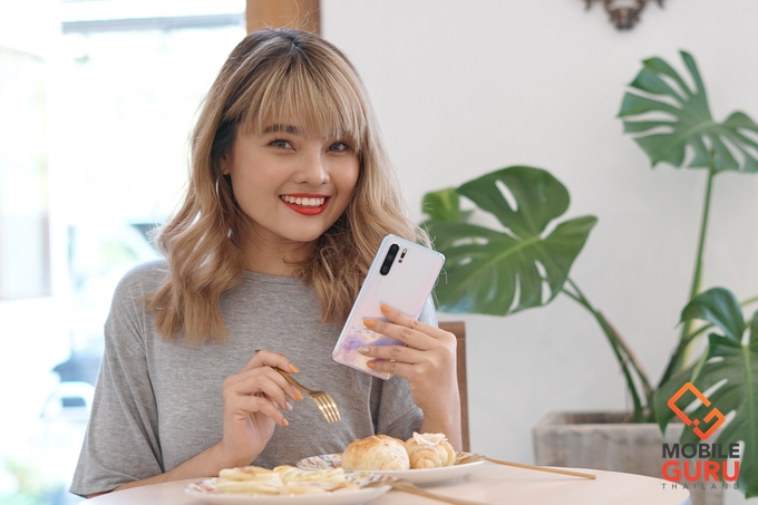 สำหรับ Huawei P30 Pro สี Breathing Crystal เครื่องนี้เป็นเครื่องส่วนตัวของผมซื้อมาให้งานเอง (ลุ้นมากๆ อยากให้เอาสี Amber Sunrise เข้ามาวางจำหน่าย) โดยบทความนี้เรายังคงอยู่กับ "น้องกีต้าร์ ชัญญา" ที่ร้าน Gleam Lifestyle Cafe คาเฟ่สไตล์มินิมอลโทนสีขาวย่านแจ้งวัฒนะ เลยเก็บภาพสวยๆ จากกล้องสมาร์ทโฟนรุ่นนี้มาให้ได้ชมกัน