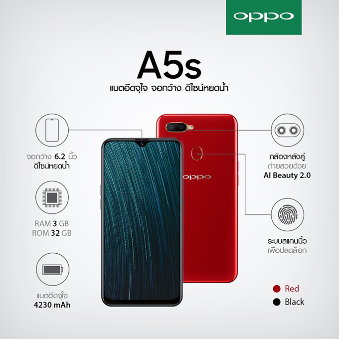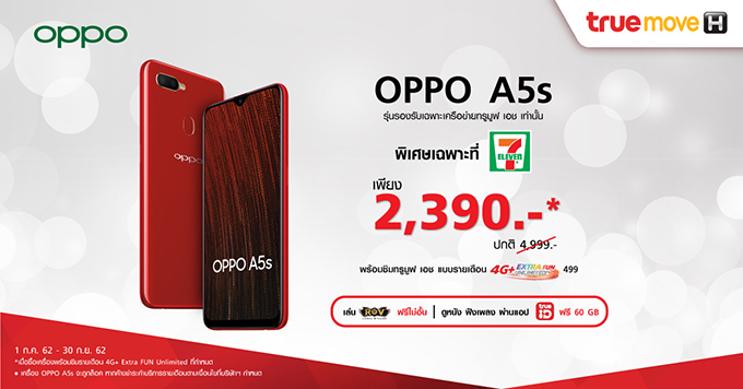 สำหรับใครที่สนใจ OPPO A5s ตอนนี้ทางออปโป้ เขาจัดแคมเปญร่วมกับ Truemove H โดยจะวางจำหน่ายผ่านเซเว่นทุกสาขา ซึ่งถ้าซื้อพร้อมซิมรายเดือนของ truemove H ด้วยค่าเครื่องก็จะลดเหลือ 2,390 บาท เท่านั้น ก็ถือว่าน่าสนใจอยู่เหมือนกันน้า แถมยังสามารถหาซื้อได้ง่ายด้วย