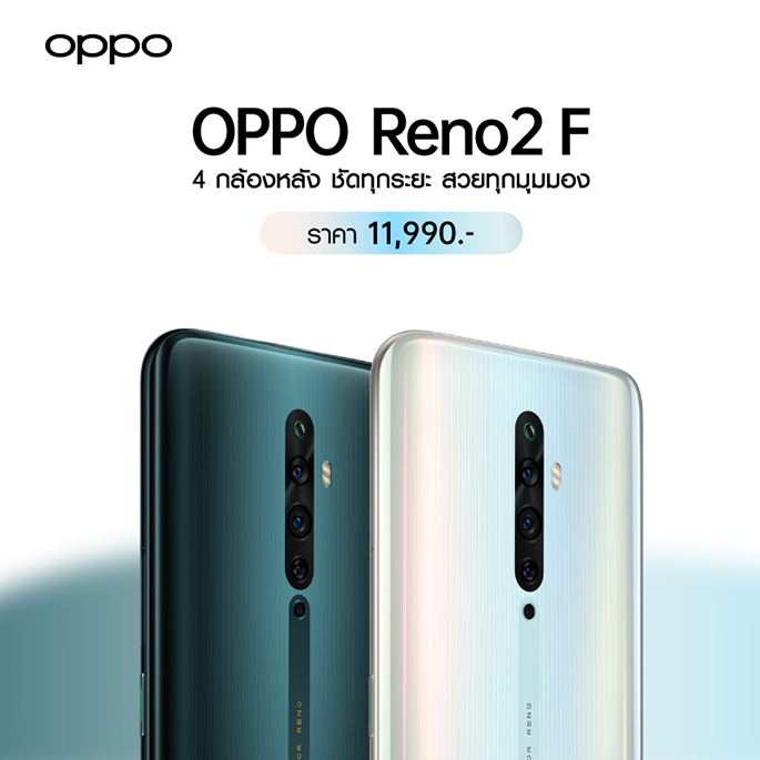 OPPO Reno2 F จำหน่ายในราคาเพียง 11,990 บาทเท่านั้น! เป็นสมาร์ทโฟนที่จัดเต็มกล้องหลังมาให้ถึง 4 ตัว พร้อมฟีเจอร์การใช้งานแบบจัดเต็ม เฉพาะแค่ความสามารถของกล้องที่ให้มา ยังไม่รวมถึงประสิทธิภาพด้านอื่น ก็ถือว่าคุ้มค่าเกินราคาแล้วจริง ๆ