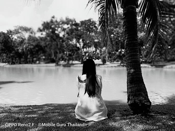 สำหรับ OPPO Reno2 F ที่ใส่เลนส์ Mono มาให้ด้วยนั้น ช่วยให้การเก็บรายละเอียดของภาพขาวดำได้ดี ดูสว่างและมีมิติมากกว่าฟิลเตอร์ที่ทำให้กลายเป็นภาพขาวดำ