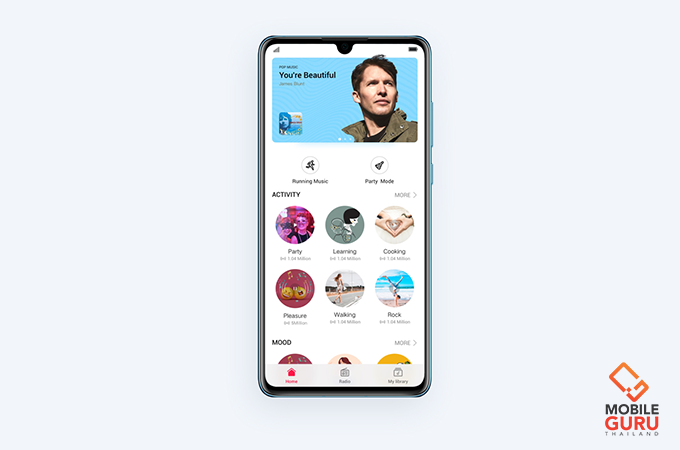 - HUAWEI Music แอปพลิเคชันสำหรับฟังเพลงที่มีเพลงให้เลือกฟังอย่างหลากหลาย กว่า 10 ล้านเพลง ให้ดื่มด่ำไปกับเสียงเพลงคุณภาพระดับ HiFi, เพลย์ลิสต์, ชาร์ตเพลงประจำสัปดาห์ และ Audiobook