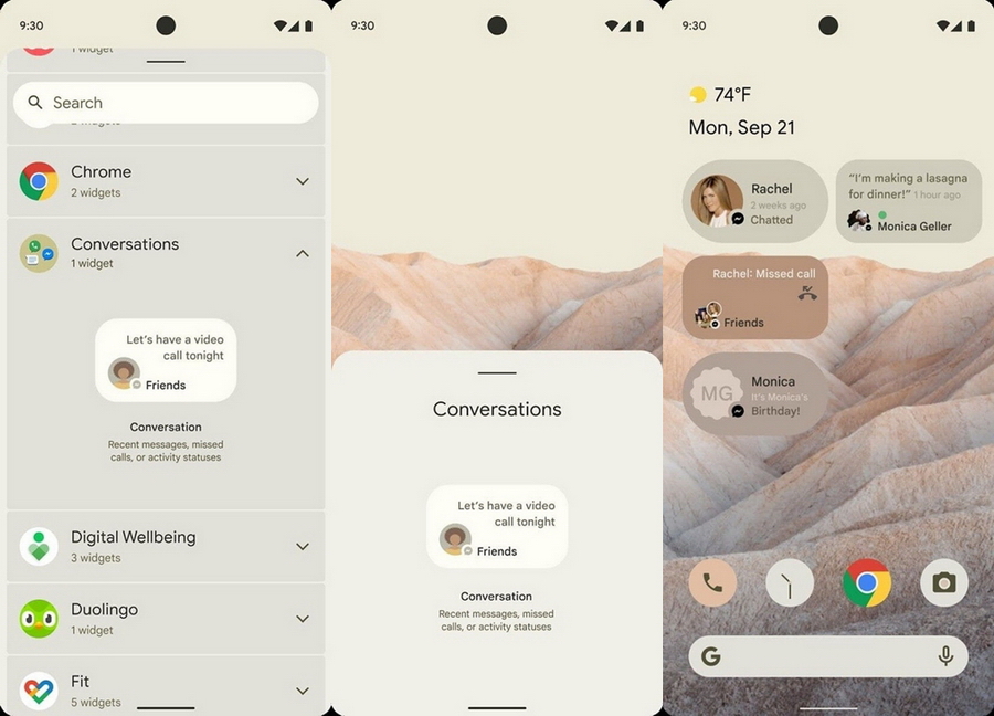 Android 12 มาพร้อม Widget ที่ดูน่าใช้งานยิ่งขึ้น และดูมีประโยชน์มากกว่าที่เคย ที่น่าสนใจเป็นพิเศษก็คือ "Conversation Widgets" โดยจะแสดงการแจ้งเตือนของแอปแชททั้งหมด พร้อมแสดงภาพอวาตาร์และชื่อ ดูน่าสนใจมากๆเลย มีขนาดเล็ก แต่ก็เพียงพอที่จะแสดงเนื้อหาบางส่วน เพื่อให้เรากดเข้าไปดูง่ายๆ ซึ่งน่าจะรองรับแอปแชททุกตัวเลยละครับ