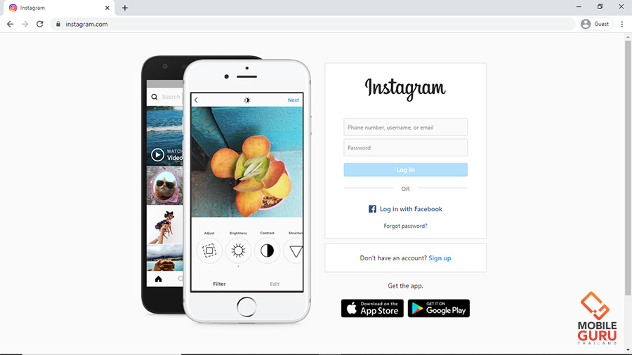Step 1 : เข้าไปที่เบราว์เซอร์บน Laptop หรือ PC แล้วพิมพ์เข้าเว็บไซต์ Instagram : www.instagram.com ตามปกติ ซึ่งในตัวอย่างจะใช้เป็น Google Chrome นะคะ สำหรับเบราว์เซอร์อื่นก็จะคล้าย ๆ กัน