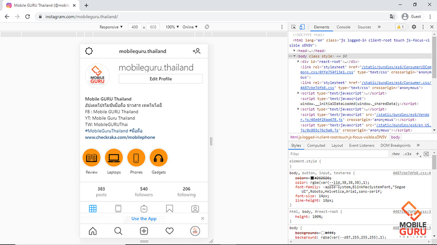 Step 5 : รีเฟรชหน้าเว็บใหม่ จากนั้นหน้าเว็บจะเปลี่ยนมุมมองเป็นเวอร์ชั่น Mobile