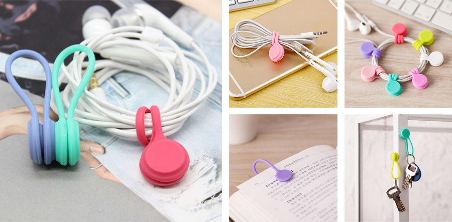 สำหรับตัวช่วยแก้ปัญหาสายหูฟังชิ้นนี้มาในสีสันสดใส รูปแบบการใช้งานคล้าย ๆ กับการที่เราใช้หนังยางหรือเคเบิลไทร์รัดของนั่นเอง แต่ความพิเศษของเจ้าที่เก็บสายหูฟังนี้คือตรงปลายชิ้นส่วนจะเป็นแม่เหล็ก เมื่อเราม้วนสายหูฟังเรียบร้อยแล้วสามารถใช้ส่วนที่มีลักษณะเป็นเส้นคล้ายเชือกพันรอบเพื่อจัดเก็บให้เป็นระเบียบก่อน แล้วค่อยใช้ส่วนปลายที่เป็นแม่เหล็กประกบกันเป็นตัวล็อกกันไม่ให้หลุด เวลาที่จะแกะเอาสายหูฟังขึ้นมาใช้งานก็ทำได้ง่าย ซึ่งนอกจากใช้สำหรับการจัดระเบียบสายหูฟังแล้ว เจ้าอุปกรณ์ชิ้นนี้ยังสามารถนำไปประยุกต์ใช้ทำอย่างอื่นได้ด้วย เช่น ทำเป็นที่แขวนกุญแจ หรือที่คั่นหน้าหนังสือ คุ้มสุด ๆ