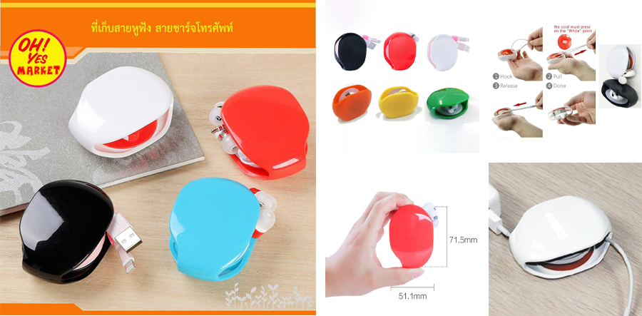 ตัวนี้เป็นที่เก็บสายหูฟัง สายชาร์จ หรือสายดาต้าต่าง ๆ แก้ปัญหาสายพันกันยุ่งเหยิงได้แน่นอนค่ะ ที่เก็บสายหูฟังรุ่นนี้มาพร้อมกับกลไกให้ม้วนเก็บสายได้แบบอัตโนมัติ เหมาะสำหรับคนที่ไม่ถนัดม้วนสายเอง มีจุดสังเกตุอยู่บ้างตรงที่ถ้ายังไช้ไม่คล่องมืออาจทำให้สายถูกดึงเข้าไปเก็นแรงเกินไปจนทำให้เกิดความเสียหายได้ ดังนั้นใครซื้อรุ่นนี้มาใช้ก็แนะนำให้ลองหาเชือกหรือสายเก่า ๆ ที่ไม่ได้ใช้แล้วมาลองเทสต์ก่อนจะดีกว่าค่ะ