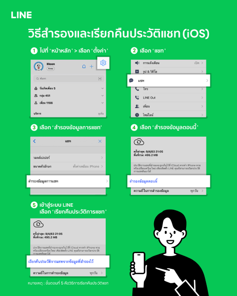 การสำรองประวัติการแชท ก็เป็นสิ่งพื้นฐานที่ผู้ใช้ LINE พึงทำอยู่สม่ำเสมอ เพื่อเก็บข้อมูลแชทต่างๆ ไว้บนแอปพลิเคชันเผื่อไว้ในกรณีที่โทรศัพท์สูญหายหรือเกิดเหตุขัดข้องใดๆ ข้อมูลการแชทก่อนหน้าของเราก็จะถูกเก็บรักษาไว้อย่างดี โดยวิธีก็มีวิธีทั้งสำหรับระบบ iOS และ Android ตามภาพ