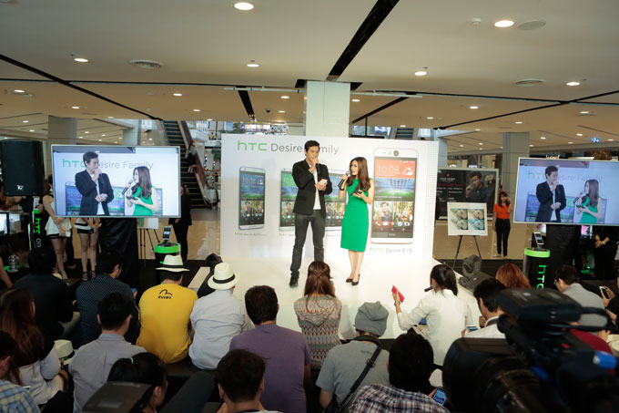เอชทีซี ผู้นำด้านนวัตกรรมการออกแบบและเทคโนโลยีสมาร์ทโฟน เขย่าวงการส่งท้ายปีจัดหนักส่งทัพ HTC Desire Family พร้อมกัน 4 รุ่น รุกตลาดสมาร์ทโฟน ขยายฐานจับทุกกลุ่มเป้าหมาย โดยมีทั้ง "HTC Desire EYE" สมาร์ทโฟนตัวแรกของโลกที่มาพร้อมกล้องหน้า และหลัง 13 ล้านเมกะพิกเซล รวมถึงสมาร์ทโฟน 2 ซิมทั้ง HTC Desire 820s, HTC Desire 816G, HTC Desire 620G ที่มีประสิทธิภาพการทำงานระดับไฮเอนด์ ในราคาที่จับต้องได้อย่างไม่น่าเชื่อ นอกจากนั้น เอชทีซียังเปิดตัวกล้อง RE นวัตกรรมการถ่ายภาพใหม่จากเอชทีซีที่จะพลิกโฉมหน้าการถ่ายภาพ รวมถึงมีการแนะนำ "ปีเตอร์ คอร์ป ไดเรนดัล" แบรนด์แอมบาสเดอร์คนแรกของประเทศไทย