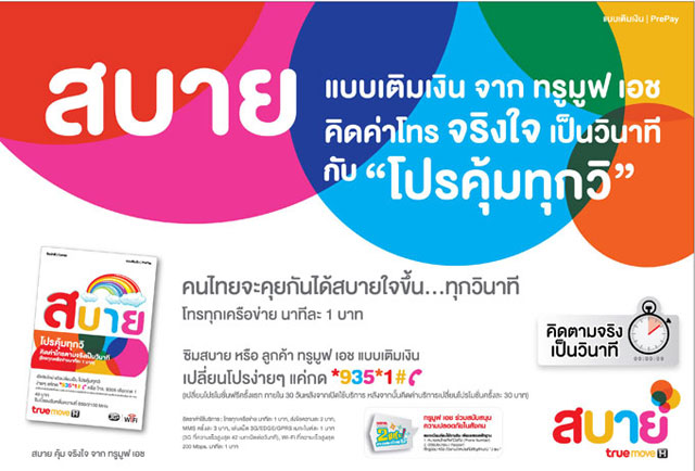ทรูมูฟ เอช ขานรับนโยบายกสทช. ส่ง "โปรคุ้มทุกวิ" โทรนาทีละ 1 บาท คิดค่าโทรตามจริงเป็นวินาที
