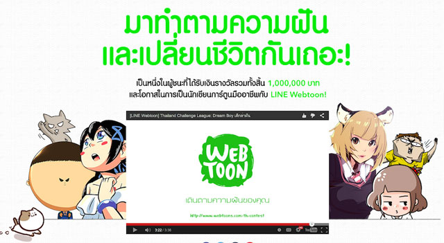 http://www.webtoons.com/th/contest ออฟฟิเชียลแอคเคาท์ LINE Webtoon TH และเฟซบุ๊คแฟนเพจ