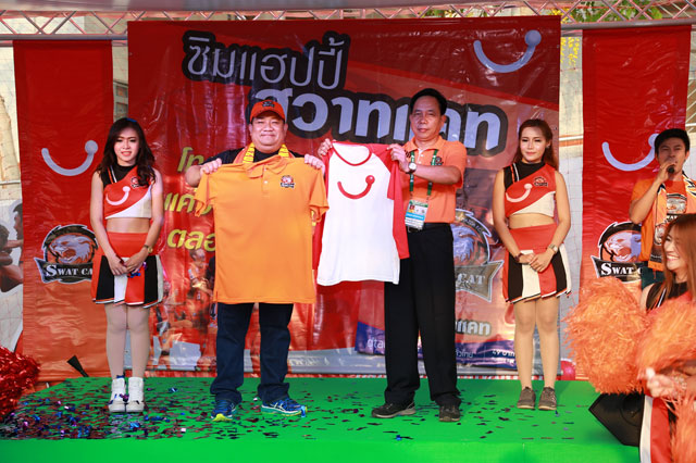 นายประเสริฐ บุญชัยสุข ประธานสโมสร ทีมฟุตบอล สวาทแคท กล่าวว่า "สโมสรมีการเร่งพัฒนาในทุกๆ ด้านเพื่อสร้างให้เป็นธุรกิจเต็มรูปแบบ มีสีสันและเอกลักษณ์เฉพาะตัว แฟนบอลของเรามีการติดต่อระหว่างกันอย่างเหนียวแน่น มีบรรยากาศการเชียร์ที่เร้าใจ และก้าวไปด้วยกันอย่างพร้อมเพรียง ความร่วมมือกับดีแทคในการใช้งาน ซิมแฮปปี้สวาทแคท ครั้งนี้จะเป็นประโยชน์ ให้นักฟุตบอล ทีมงานสต๊าฟโค้ช ตลอดจนแฟนบอลของสโมสรที่มีอยู่ทั่วประเทศ ได้ติดต่อสื่อสารผ่านโครงข่ายดีแทค 3G และ 4G ได้โทรติดต่อหากัน และสามารถแลกเปลี่ยนข้อมูลข่าวสารถึงกันได้สะดวกรวดเร็ว จะช่วยยกระดับให้สโมสรเป็นมีการพัฒนาอย่างมืออาชีพ