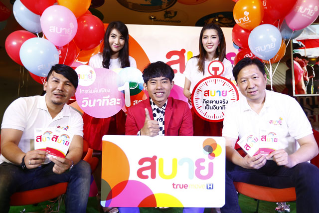 ทรูมูฟ เอช ตอกย้ำความเป็นผู้นำบริการด้านการสื่อสารที่มอบความคุ้มค่าสูงสุด และรู้ใจคนไทยมากที่สุดเปิดตัวแบรนด์ "สบาย" ระบบเติมเงินรูปแบบใหม่ที่ทำให้คนไทยสบายใจกว่าเดิม เข้าใจวิถีสบายๆ ของคนไทยตอบโจทย์ลูกค้าที่เน้นโทร คุยสบายชัดเจน ไม่มีสะดุดบนเครือข่าย 3G ที่ครอบคลุมมากที่สุดทั่วไทย สบายใจสบายกระเป๋าคิดค่าโทรตามจริงเป็นวินาทีกับ 3 โปรโมชั่นสุดคุ้มค่าโทรเริ่มต้นเพียงวินาทีละ 1 สตางค์ สบายใจสุดๆ เพราะสามารถเลือกเปลี่ยนโปรให้เข้ากับรูปแบบการใช้งานของผู้ใช้ได้ตลอดเวลา ตามใจไม่จำกัด