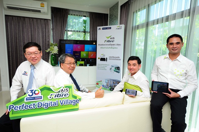 "Perfect Digital Village powered by AIS Fibre" ดิจิทัลวิลเลจเพื่อไลฟ์สไตล์คนรุ่นใหม่ สร้างสรรค์โดยความร่วมมือระหว่าง เอไอเอส ไฟเบอร์ และพร็อพเพอร์ตี้ เพอร์เฟค ที่มุ่งยกระดับบ้านทุกหลังให้เป็นดิจิทัล สมาร์ท โฮม ด้วยการนำโครงข่ายดิจิทัล ทั้ง Fix Broadband และ Super WiFi เข้ามาวางเป็นรากฐาน Home Digital Service Infrastructure ภายในที่พักอาศัยและโครงการ เสมือนกับสาธารณูปโภคพื้นฐานพร้อมใช้เช่นเดียวกับไฟฟ้า ประปา ทั้งนี้ เพื่อมอบประสบการณ์การใช้อินเทอร์เน็ตความเร็วสูงที่ให้มากยิ่งกว่าในทุกๆ ด้าน ตอบทุกความต้องการของทุกคนในครอบครัว ประกอบด้วย