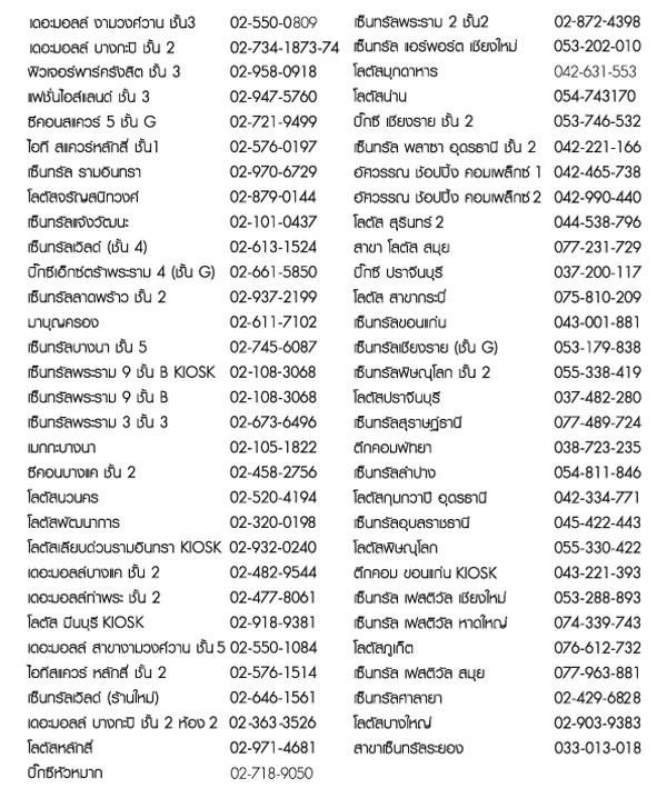 สาขา TG FONE ที่ร่วมรายการ (61 สาขา) ดังนี้