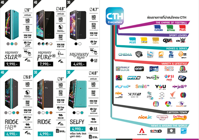 สำหรับสาวก วีโก (Wiko) ทั้งหลาย เพียงคุณโหลดแอป CTH Everywhere ก็สามารถเต็มอิ่มไปกับหลากหลายรายการเด็ดๆ จากช่องทีวีชั้นนำของโลกได้เลย นานถึง 90 วัน* สำหรับรุ่นที่รองรับ ได้แก่ Highway Star 4G / Highway Pure 4G/ Selfy / Ridge Fab 4G / Ridge / Wax 4G / Highway Signs / Slide