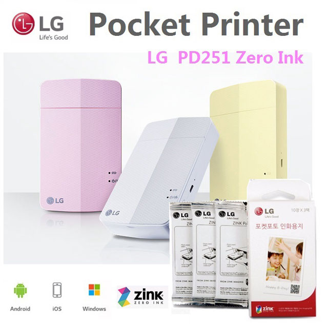 เครื่องพิมพ์ภาพถ่ายแบบพกพา LG Pocket Photo รุ่น PD251 มาพร้อมน้ำหนักเบาเพียง 183 กรัม มีให้เลือก 2 สี ได้แก่ สีชมพู PD251P และสีขาว PD251W จำหน่ายในราคา 3,490 บาท