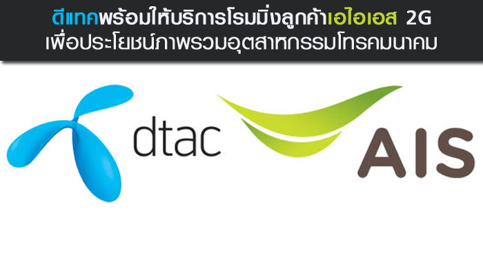 ทั้งนี้ ดีแทคจะให้บริการโรมมิ่งกับลูกค้าเอไอเอส ให้ดีที่สุดเหมือนเป็นลูกค้าของดีแทคอีกด้วย