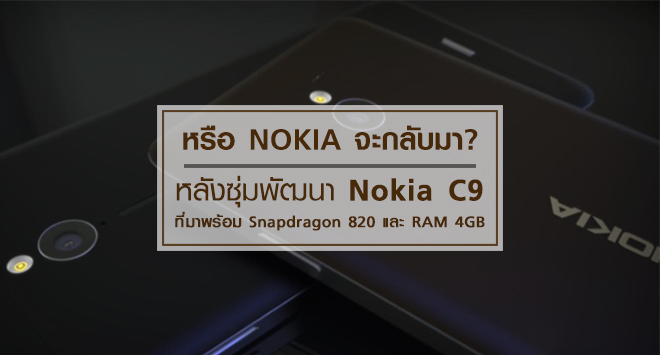 หลังจากได้มีข่าวลือต่าง ๆ นานา เกี่ยวกับ Nokia ที่จะเปิดตัว Nokia C1 สมาร์ทโฟนที่จะมาพร้อมกับระบบปฏิบัติการ Android และ Windows แต่จนถึงตอนนี้ก็ยังดูไร้วี่แวว สุดมีข่าวลือระลอกใหม่ออกมาอีกว่าทางค่ายมือถือยักษ์ใหญ่จากฟินแลนด์กำลังซุ่มพัฒนาสมาร์ทโฟน Nokia C9 และจะมาพร้อมชิป Snapdragon 820 และ RAM 4GB อีกด้วย