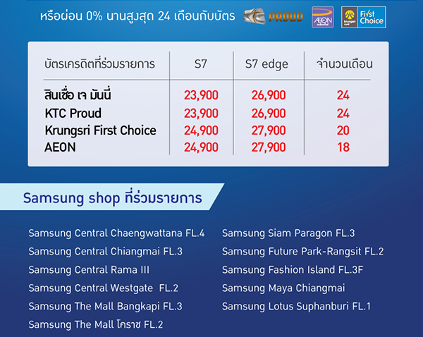 มาแล้ว!! โปรโมชั่นดีดี จาก Jaymart ... Samsung Galaxy S7 และ S7 edge ผ่อน 0% นาน 24 เดือน