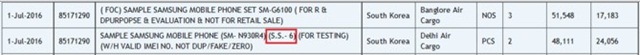 โดยทาง Zauba เปิดเผยข้อมูลว่ามีการนำเข้าสินค้ามาจากเกาหลีใต้เมื่อวันที่ 1 กรกฎาคมที่ผ่านมา เป็นสมาร์ทโฟนที่รหัสรุ่น SM-N930R4 มีขนาดจอแสดงผล 6 นิ้ว ซึ่งนำเข้ามาในประเทศอินเดียเพียง 2 เครื่อง เพื่อเป็นเครื่องทดสอบ แต่ความกว้างของจอแสดงผลในช่วง 5.7 - 6.0 นิ้ว ก็ไม่ได้มีความแตกต่างกันมากเท่าไหร่ อาจจะเป็นความผิดพลาดทางด้านข้อมูลก็ได้