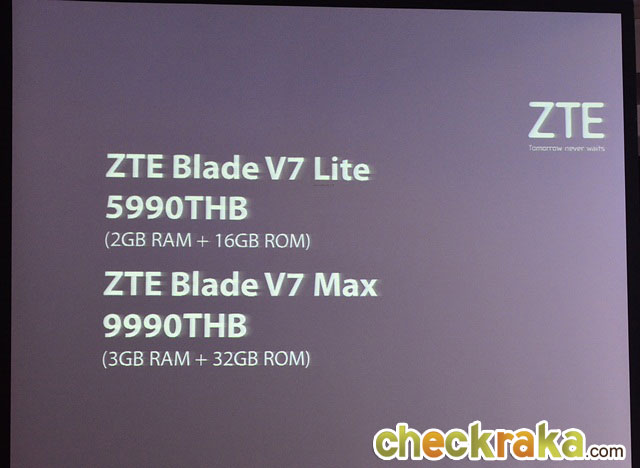 นอกจาก Blade V7 Lite แล้ว ZTE ได้ส่ง Blade V7 Max ลุยตลาดพร้อมๆ กันอีกด้วย มิสเตอร์เรมี จ้าว กล่าวเพิ่มเติม "สิ่งที่เราให้ความสำคัญสูงสุด คือ การนำเสนอสมาร์ทโฟนคุณภาพสูงในราคาคุ้มค่า แซดทีอีได้สร้างสรรค์สมาร์ทโฟนรุ่นต่างๆ ที่มีคุณสมบัติหลากหลายเพื่อให้เหมาะสมกับความต้องการของลูกค้าและงบประมาณ แซดทีอี เบลด เซเว่นซีรีส์ทั้งสองเครื่องนี้จะตอบสนองความต้องการของผู้ใช้สมาร์ทโฟนได้ในทุกเซ็กเม้นท์ตั้งแต่นักเรียนจนถึงคนทำงาน"