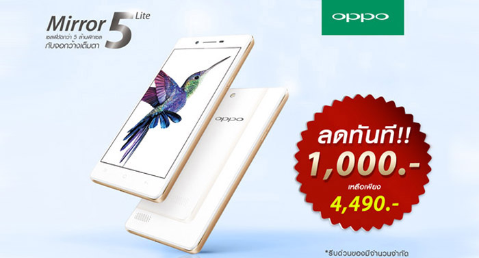 OPPO จัดโปรกันแบบจุใจ กระหน่ำราคา Mirror 5 Lite ลดทันที 1,000 บาท