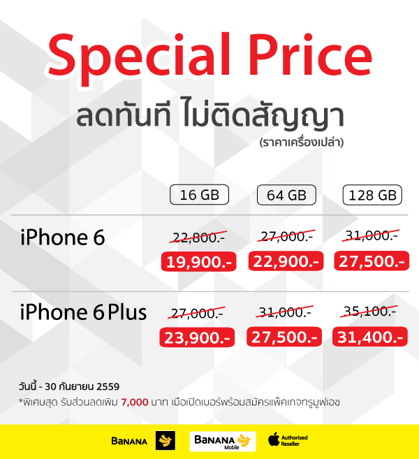 บานาน่าโมบาย ลดราคา iPhone 6 และ iPhone 6 Plus แบบไม่ติดสัญญา เริ่มต้นเพียง 19,900 บาท