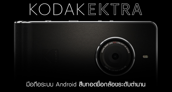 Kodak Ektra มือถือระบบ Android รุ่นใหม่จาก Kodak ซึ่งฝ่าฟันจนผ่านการล้มละลายได้สำเร็จในปี 2013 เนื่องจากไม่สามารถปรับตัวจากยุคของฟิล์มมาสู่ยุคดิจิตอลได้ โดยล่าสุดเข้ามาลุยในตลาดสมาร์ทโฟน มาคราวนี้รู้จุดแข็งของตัวเองซักทีครับ และผมเชื่อว่าไม่น่าจะผิดพลาดเหมือนคราวที่แล้วกับ Kodak IM5 แน่นอน เพราะจากที่เห็นต้องบอกว่าร้องว้าวหมดโลกกันเลยทีเดียวกับ Kodak Ektra
