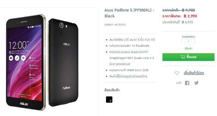 ไม่ควรพลาด! ASUS Padfone S ลดราคาเหลือแค่ 2,990 บาท (จำนวนจำกัด!)
