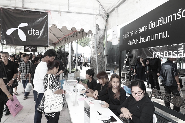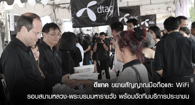 นายลาร์ส นอร์ลิ่ง ประธานเจ้าหน้าที่บริหาร บริษัท โทเทิ่ล แอ็คเซ็ส คอมมูนิเคชั่น จำกัด (มหาชน) หรือดีแทค เปิดเผยว่า "ผู้บริหารและพนักงานดีแทคทุกคนพร้อมใจกันทำหน้าที่อย่างเต็มความสามารถเพื่อให้บริการกับประชาชนที่เดินทางสู่สนามหลวงและพระบรมมหาราชวังอย่างเต็มที่ โดยดีแทคจัดเตรียมความพร้อมโครงข่ายสัญญาณมือถือและ WiFi ในระดับความพร้อมสูงสุดเพื่ออำนวยความสะดวกแก่ประชาชนที่เดินทางมาบริเวณพระบรมมหาราชวัง ตั้งแต่วันที่ 29 ตุลาคม พ.ศ. 2559 ซึ่งคาดว่าจะมีประชาชนเดินทางมาอย่างหนาแน่น โดยผู้บริหารและพนักงานดีแทคได้มุ่งมั่นทำหน้าที่ของตนเองด้วยใจเพื่อผู้ใช้งานทุกคน"