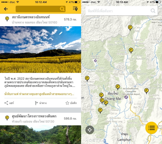 ตามรอยโครงการหลวงและโครงการในพระราชดำริในหลวงรัชกาลที่ 9 ผ่านแอปพลิเคชันแผนที่นำทาง