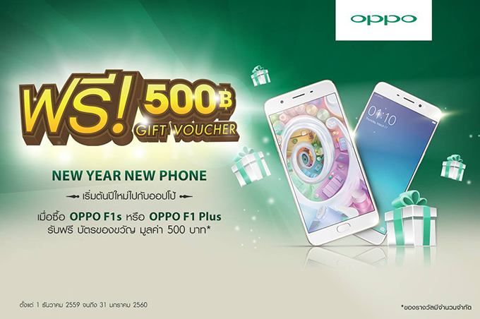 OPPO F1s New Year New Phone เริ่มต้นปีใหม่ดีๆ รับทันที Gift Voucher มูลค่า 500 บาท