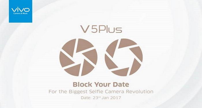Vivo V5 Plus สมาร์ทโฟนกล้องหน้าคู่ เตรียมจะเปิดตัว 23 มกราคมนี้ในประเทศอินเดีย โดยล่าสุดมีภาพโปรโมทหลุดออกมา พร้อมเผยจุดเด่นกล้องหน้าคู่ ความละเอียด 20MP ตอกย้ำสโลแกน Perfect Shot, Perfect Selfie แถมยังเปิดเผยสเปคบางส่วน อย่างหน้าจอขนาด 5.5 นิ้ว ความละเอียด Full HD 1080P, RAM 4GB และหน่วยความจำภายใน 64GB