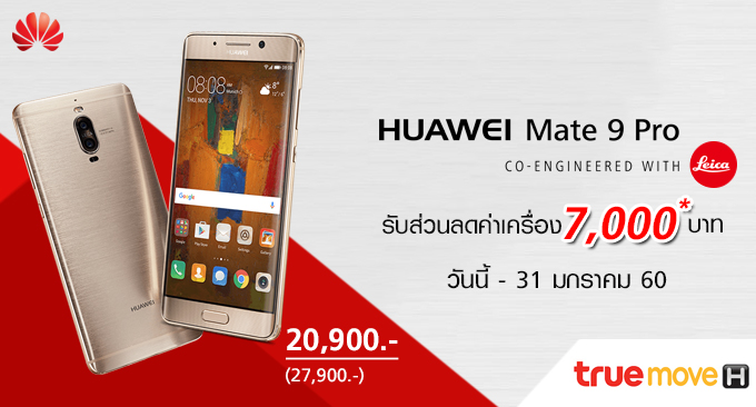 Truemove H จัดหนัก! Huawei Mate 9 Pro ลดค่าเครื่อง 7,000 บาท วันนี้ - 31 มกราคม 60