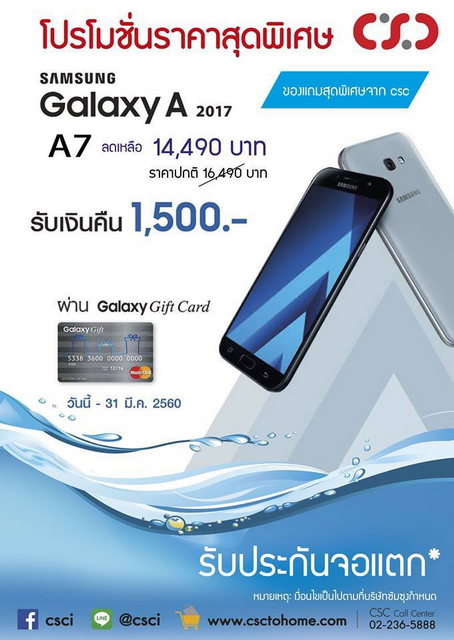 ใครที่สนใจ Samsung Galaxy A7 (2017) ก็รีบไปจับจองเป็นเจ้าของกันได้ที่ Banana, BKK, Jaymart และ CSC เลยครับ