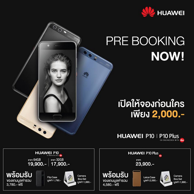 โดยขณะนี้ Huawei P10 และ P10 Plus ได้เปิดให้สั่งจองล่วงหน้าแล้ว จนถึงวันที่ 26 มีนาคม 2560 สำหรับราคามาตรฐานจากศูนย์จะมีรายละเอียดดังนี้ครับ
