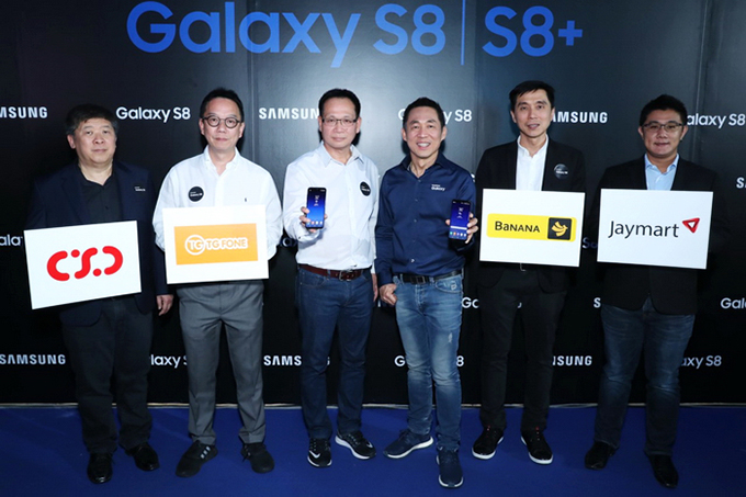 ซัมซุง ผนึกแบรนด์ช้อปและร้านพันธมิตรชั้นนำของประเทศไทย ได้แก่ Com 7, CSC, Jaymart และ TG Fone จัดโปรโมชั่นร้อนๆ สำหรับลูกค้าที่ซื้อ Samsung Galaxy S8 สมาร์ทโฟน ไร้กรอบ ไร้ปุ่มโฮม ที่กำลังเป็นที่ต้องการที่สุดในขณะนี้