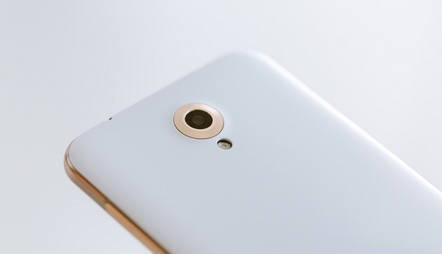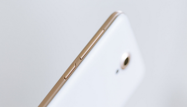 ชุดกล้อง และขอบด้านข้างเครื่องจะเป็นสีทอง ด้านขวามีปุ่มปรับระดับเสียง และปุ่ม Power