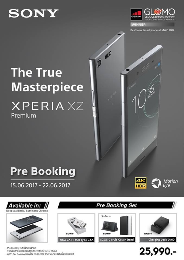 สำหรับใครที่สนใจ และกำลังรอเป็นเจ้าของสมาร์ทโฟน Sony XZ Premium อยู่ คงต้องเตรียมตัวให้พร้อม เพราะว่าทาง โซนี่ ประเทศ เตรียมเปิดให้ Pre Booking ในวันที่ 15 - 22 มิถุนายน 2560 นี้ ในราคาเปิดตัว 25,990 บาท