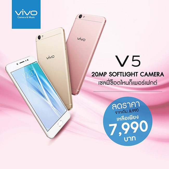 วีโว่ จัดโปรโมชั่นสุดพิเศษกับสมาร์ทโฟน Vivo V5 ในราคาสุดพิเศษ เพียง 7,990 บาท
