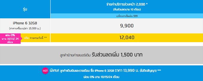 *** รายการส่งเสริมการขายนี้ไม่สามารถใช้ร่วมกับส่วนลดย้ายค่ายเบอร์เดิม 1,500 บาทดูรายละเอียดเพิ่มเติมได้ที่ www.dtac.co.th/iphone6ข่าว-โปรโมชั่นล่าสุดอื่นๆ