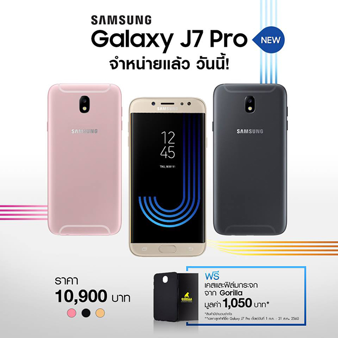 Samsung Galaxy J7 Pro จำหน่ายแล้ววันนี้ ฟรี! เคสและฟิล์มกระจก จาก Gorilla มูลค่ารวม 1,050 บาท