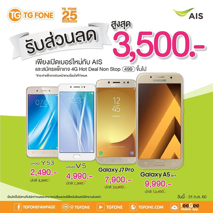 เอไอเอส จัดให้! ซื้อสมาร์ทโฟนที่ TG Fone พร้อมเปิดเบอร์ใหม่ รับส่วนลดสูงสุด 3,500 บาท