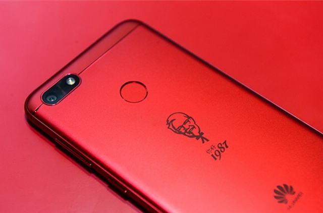 KFC ฉลองครบรอบการเปิดกิจการในประเทศจีน ครบ 30 ปี หันมาจับมือกับ Huawei แบรนด์สมาร์ทโฟนชื่อดังของจีน ผลิตสมาร์ทโฟนรุ่นพิเศษสำหรับฉลองครบรอบ 30 ปีนี้ ตัวเครื่องสีแดงดูสวยงามมากครับ และด้านหลังจะมีโลโก้ KFC ระบุปี 1987 และมีโลโก้ Huawei อยู่ด้านล่าง